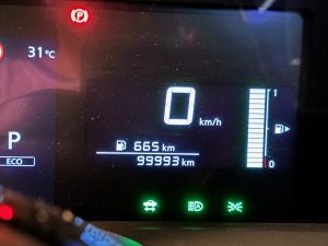 (高速に乗る前だったので「99,993km」ですが)