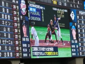 フェンス直撃の二塁打