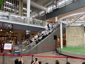 エスカレーターで!